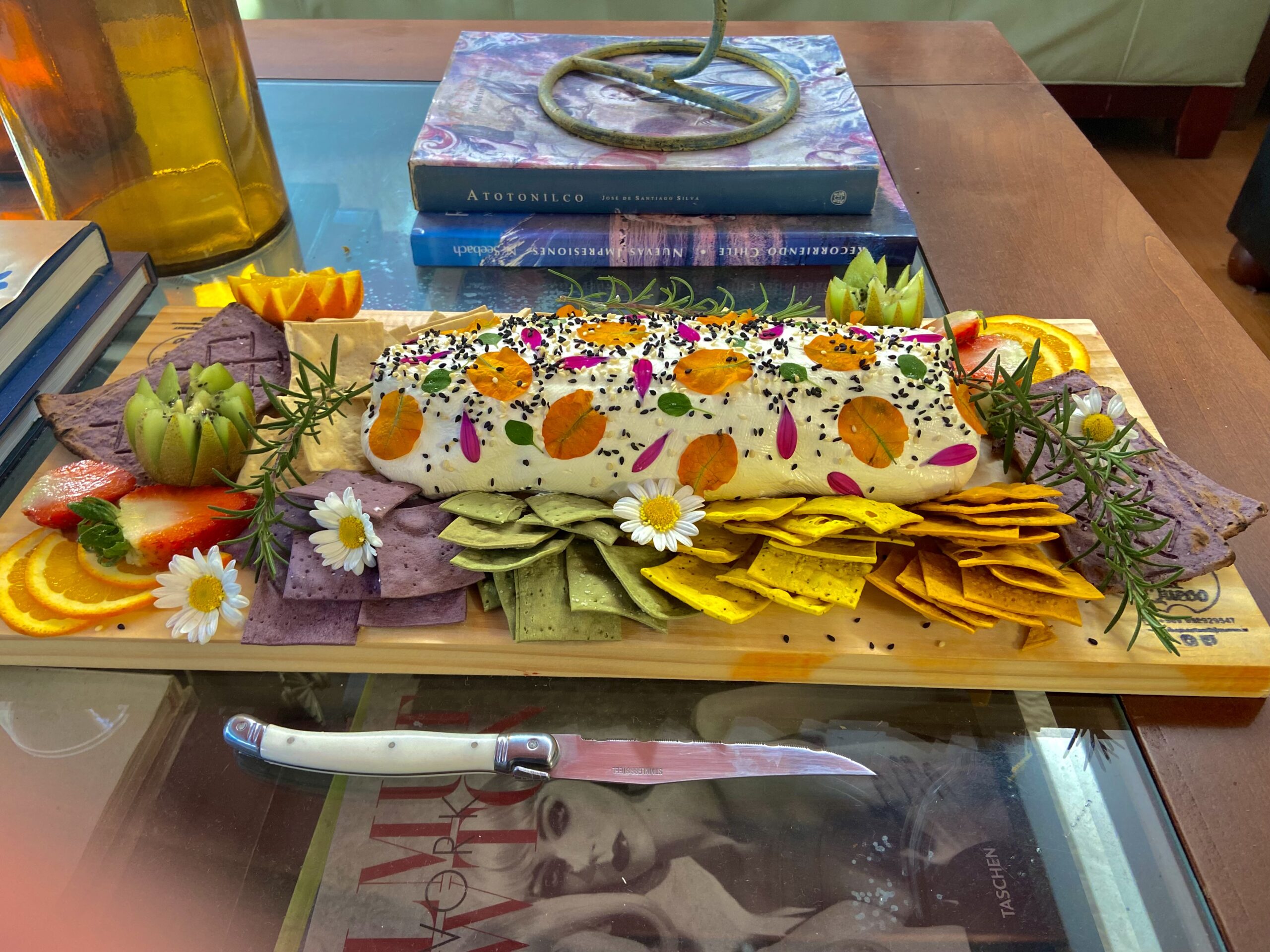 Nuestra tabla incluye una propuesta de Pâté de alta calidad, decorado con queso untable y pétalos de flores comestibles , elaborado con maestría y cuidado para brindar un sabor suave y una textura untuosa. Los ingredientes frescos y la receta tradicional hacen que cada bocado sea una delicia inigualable.